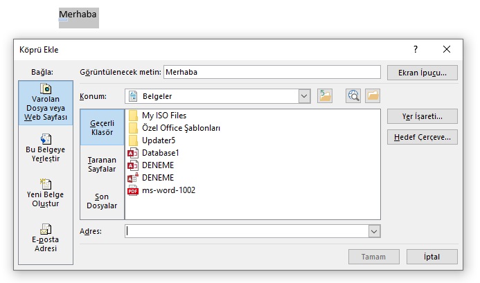 word ekle sekmesi.